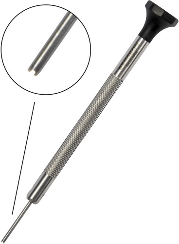 Skrutrekker med tilpasset blad for å justere den eksentriske skruen til minuttelleren for kaliber ETA Valjoux 7750