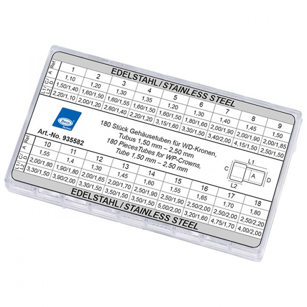 Assortement med 180 kassehalser Ø:1,5-2,5 mm