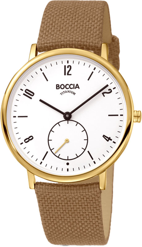 Bocciatitanur,dbl, rund,hvitskive, beige rem*