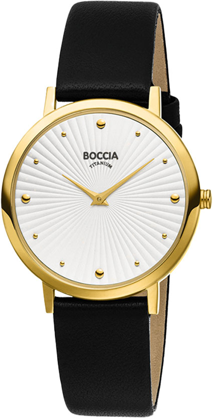 BOCCIA titanur, rund, hvit skive, sort rem, dbl.