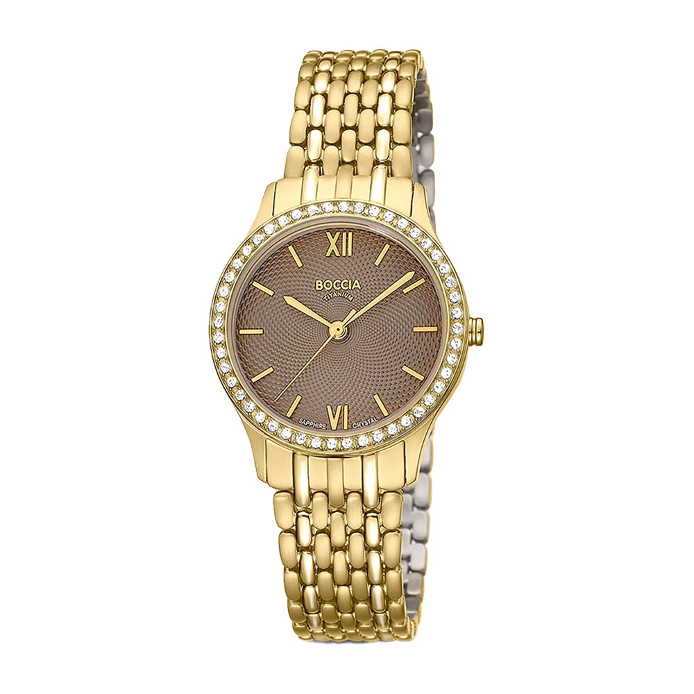 Boccia Titanur, dame, lenke, PVD, brun skive, stener, safirglass - Ø 32 mm, 3 ATM