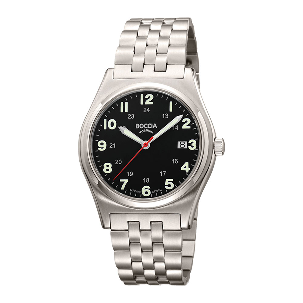 Boccia hr, titanur, lenke, sort skive, safirglass, Ø 39 mm