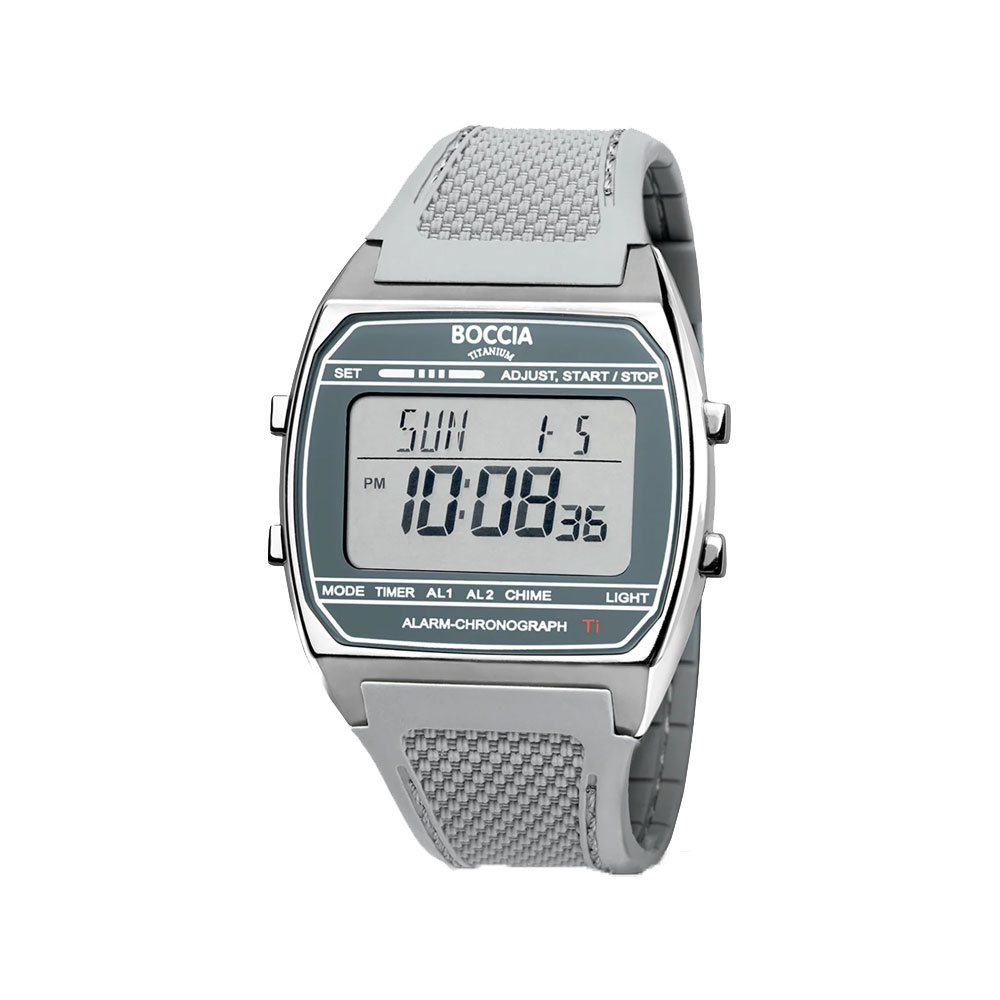 Boccia hr, titanur, grå silikonrem, digital, LCD, Ø 37 mm, 5 ATM