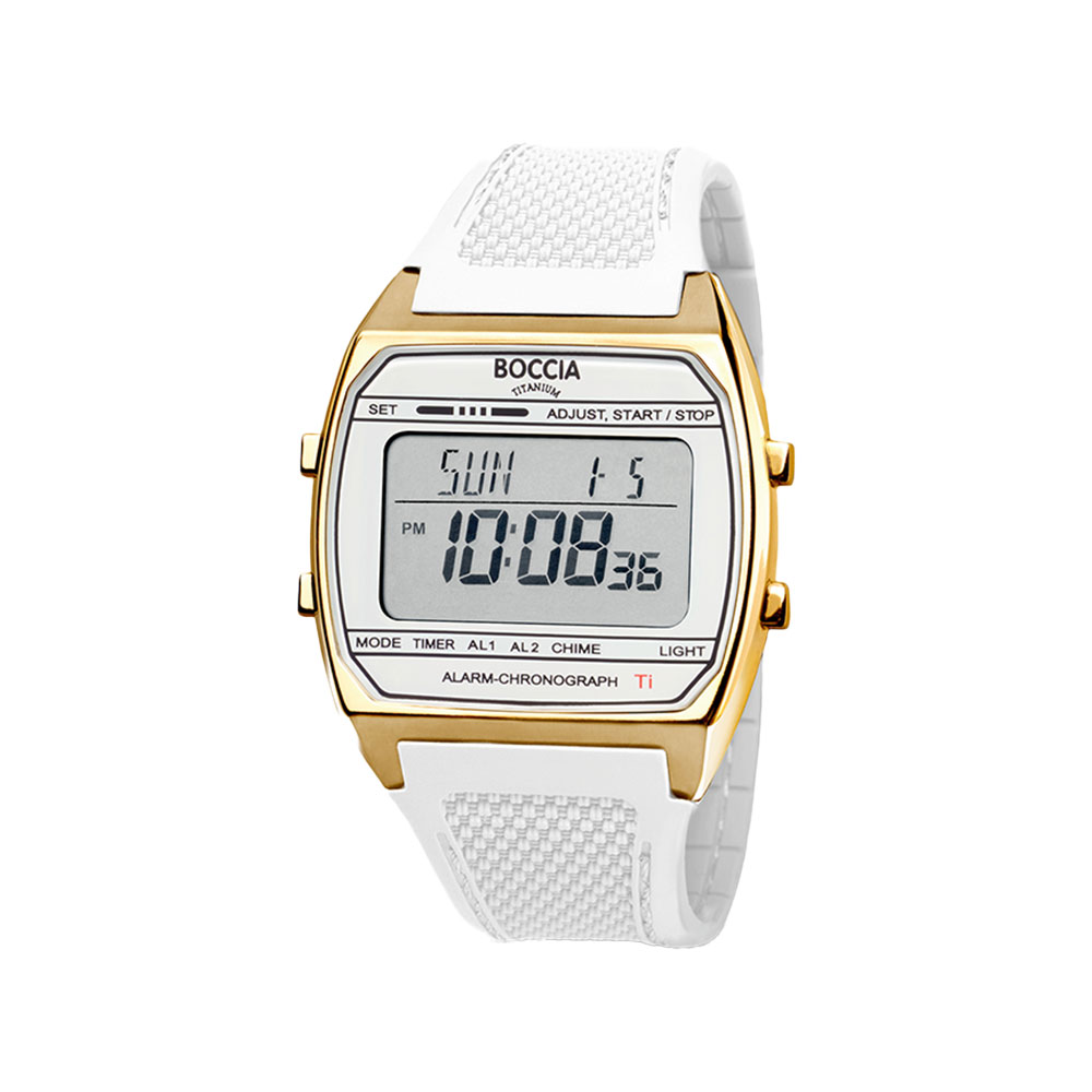 Boccia hr, titanur, hvit silikonrem, digital, LCD - Ø 37 mm, 5 ATM
