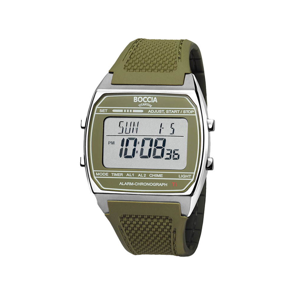 Boccia hr, titanur, grønn silikonrem, digital, LCD - Ø 37 mm, 5 ATM