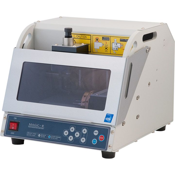 CNC-graveringsmaskinen Magic-R er spesielt designet for gravering av innsiden og utsiden av ringer. En sensor måler automatisk ringstørrelsen mens en laserpeker markerer området som skal graveres.
