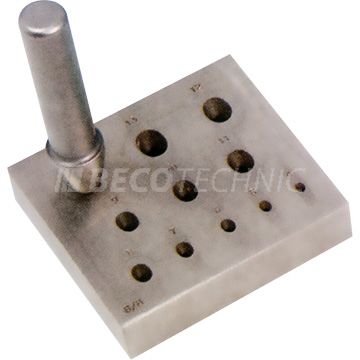 Karatstansestempel for å stanse standarden i en ringflate. Graveringen er svakt buet for å følge formen på ringen, og den buede formen gjør det mulig å slå direkte i ringer.