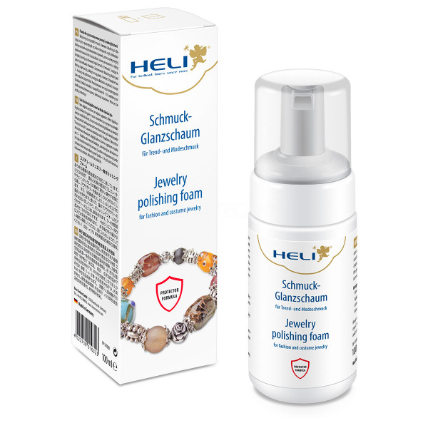 Heli poleringsskum for smykker er egnet for alle slags edle metaller og er spesielt laget for rengjøring av smykker som har sorte detaljer. Skummet bidrar til å holde de sorte delene mørke og renser selv de minste mellomrom for å gjenskape original glans.