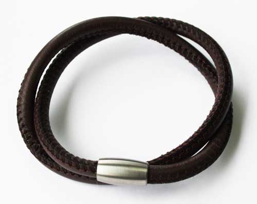 Skinnarmb. rund 5mm Brun m/mag.lås stål 38cm