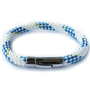 Seilerarmbånd av nylontau med 8mm tykkelse, med klikklås i polert stål. ?Låsen er fjærbelastet, og åpnes når man trykker på knappen. 21cm lengde, andre lengder kan bestilles.