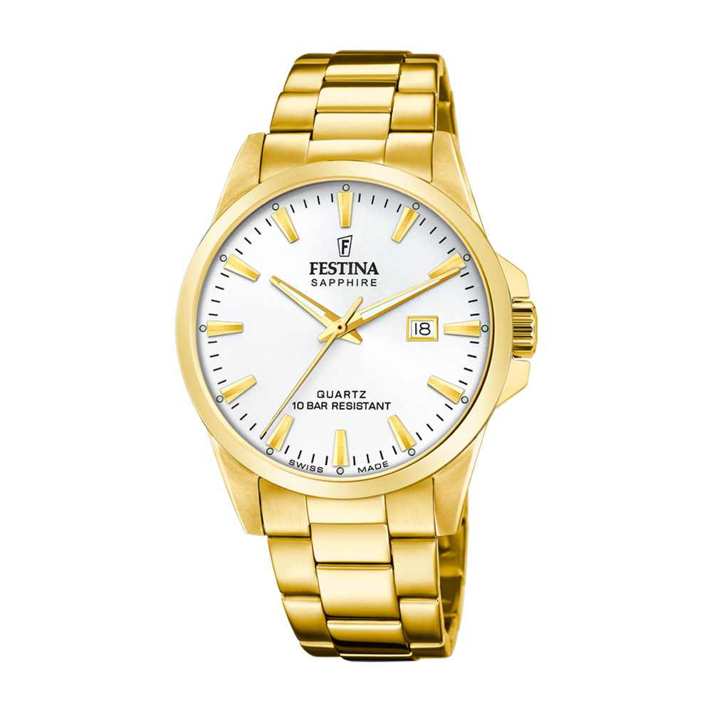 Festina Swiss Made, herre, lenke, PVD, hvit skive, safirglass, 10 ATM, Ø 41 mm