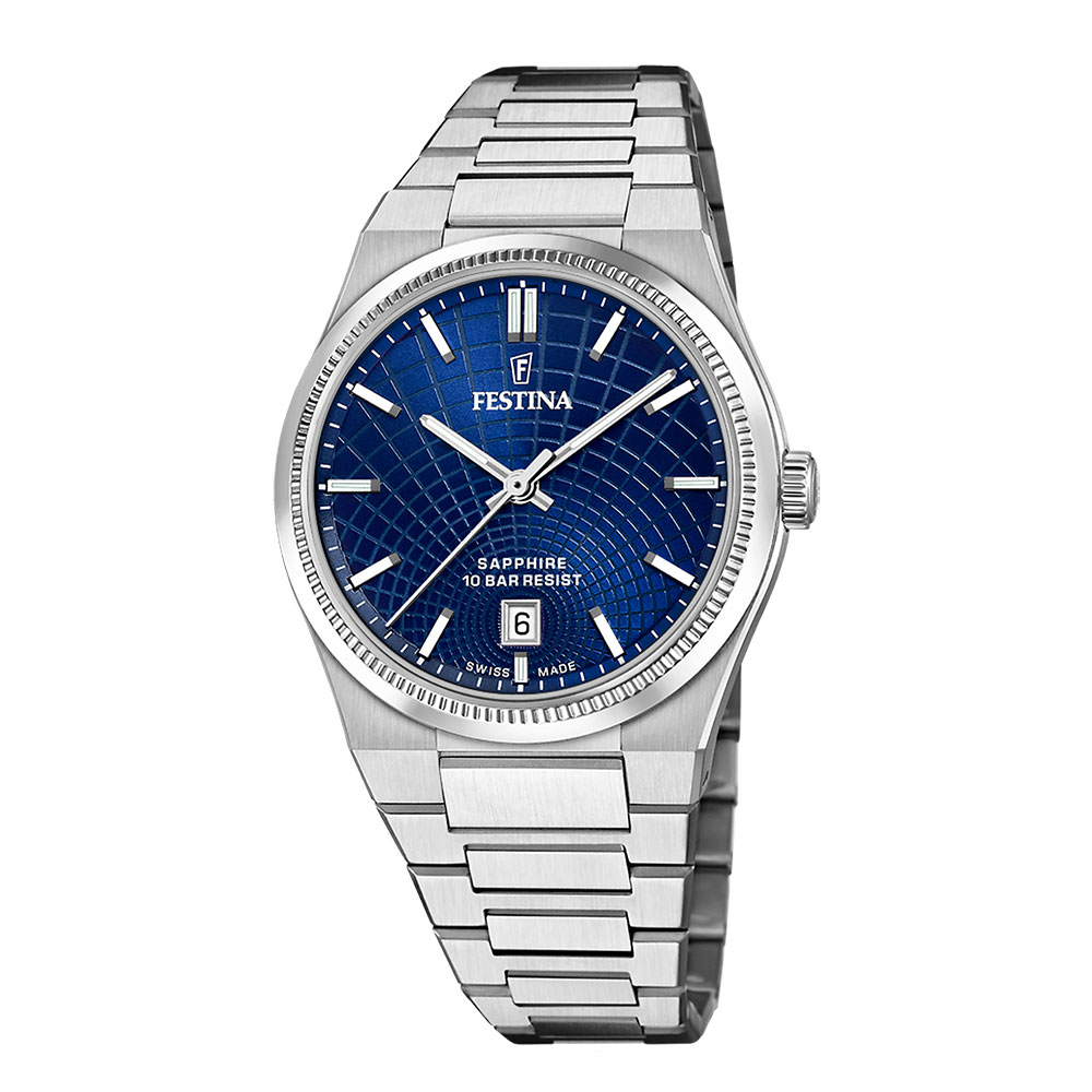 Festina Swiss Made, herre, lenke, mørkeblå skive, safirglass, 10 ATM, Ø 40 mm