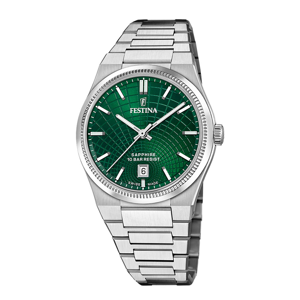 Festina Swiss Made, herre, lenke, grønn skive, safirglass, 10 ATM, Ø 40 mm