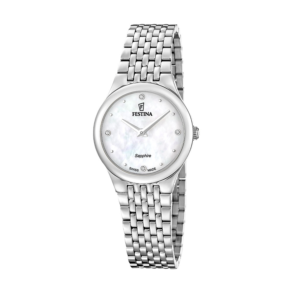 Festina Swiss Made, dame, lenke, perlemorskive, safirglass, 5 ATM, Ø 29 mm