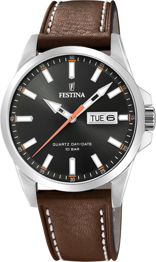 Festina, herre, rem, brun, sort skive - 10 ATM, Ø 41 mm