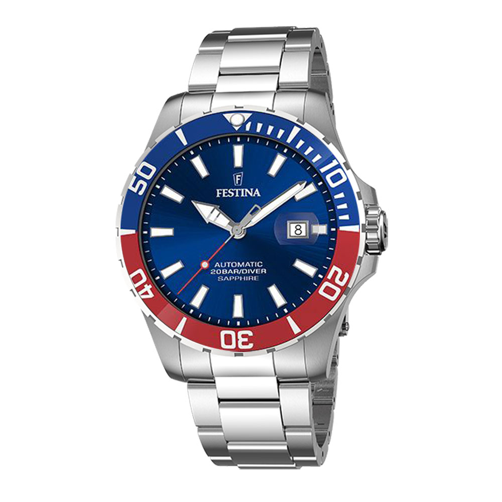 Festina, herre, lenke, diver, automat, safirglass, blå skive, blå/rød bezel - 20 ATM, Ø 44 mm