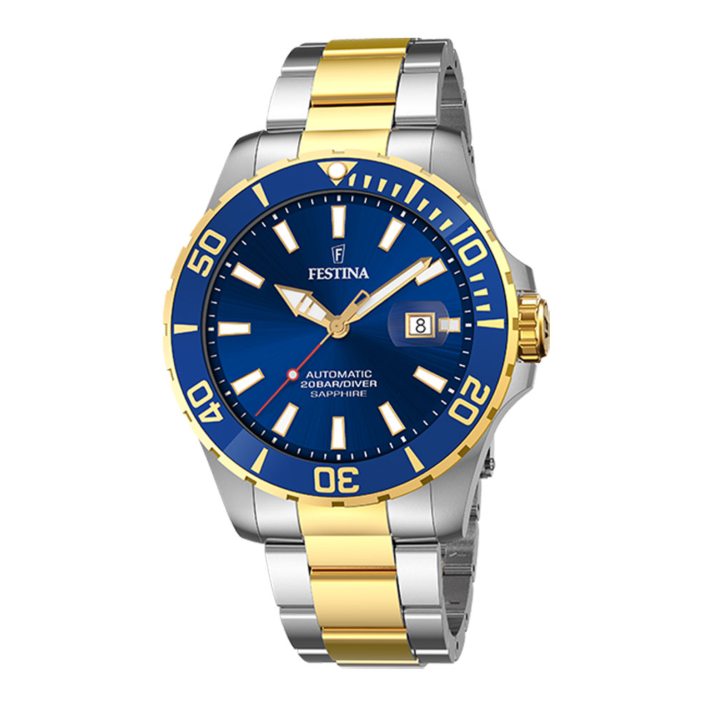 Festina, herre, lenke, bicolor, diver, automat, safirglass, blå skive - 20 ATM, Ø 44 mm