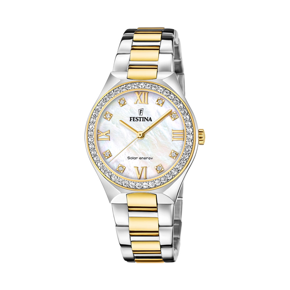 Festina, dame, lenke, solar, bicolor, stener, hvit skive - 5 ATM, Ø 35 mm *