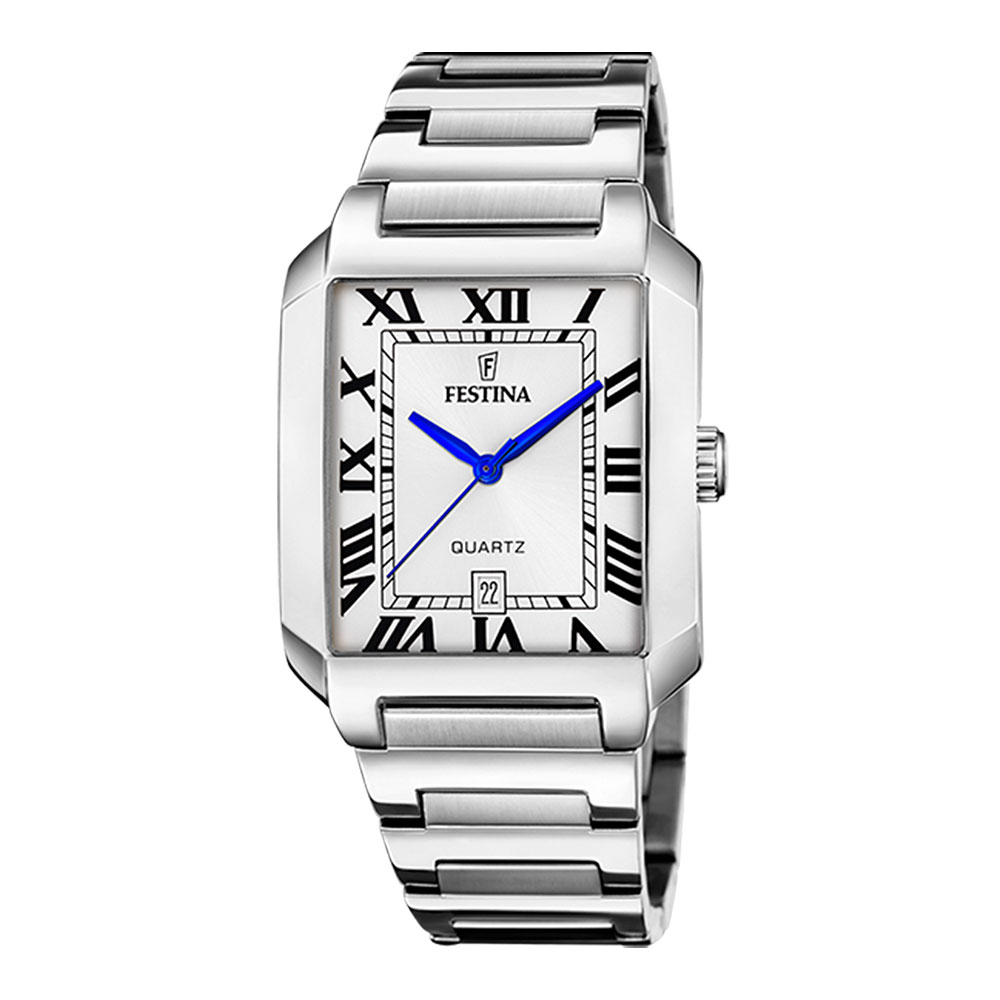 Festina, herre, lenke, rektangulær, hvit skive, romertall - 5 ATM, Ø 40,5 x 36 mm