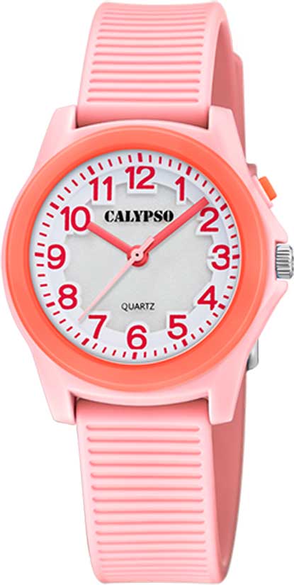 Calypso barneur 10 atm, Ø 34 mm, rosa ,hvit skive *