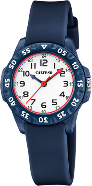 Calypso barneur, 10 atm, Ø 30 mm, mørk blå rem/hvit skive