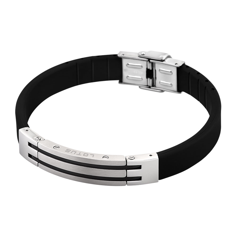 Lotus Style, armbånd i skinn og stål, sort (bredde 10 mm, lengde 18,9 cm)