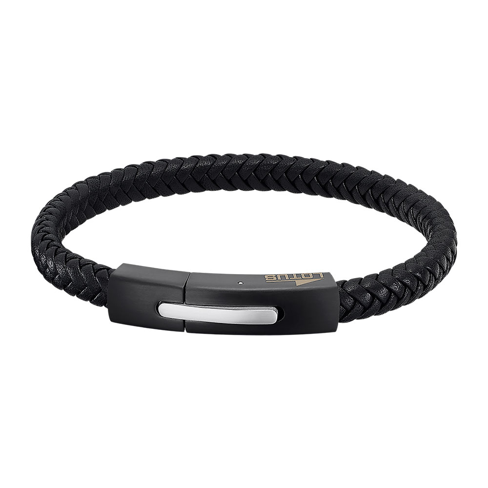 Lotus Style, armbånd i skinn og stål, sort (bredde 7,5 mm, lengde 21 cm)