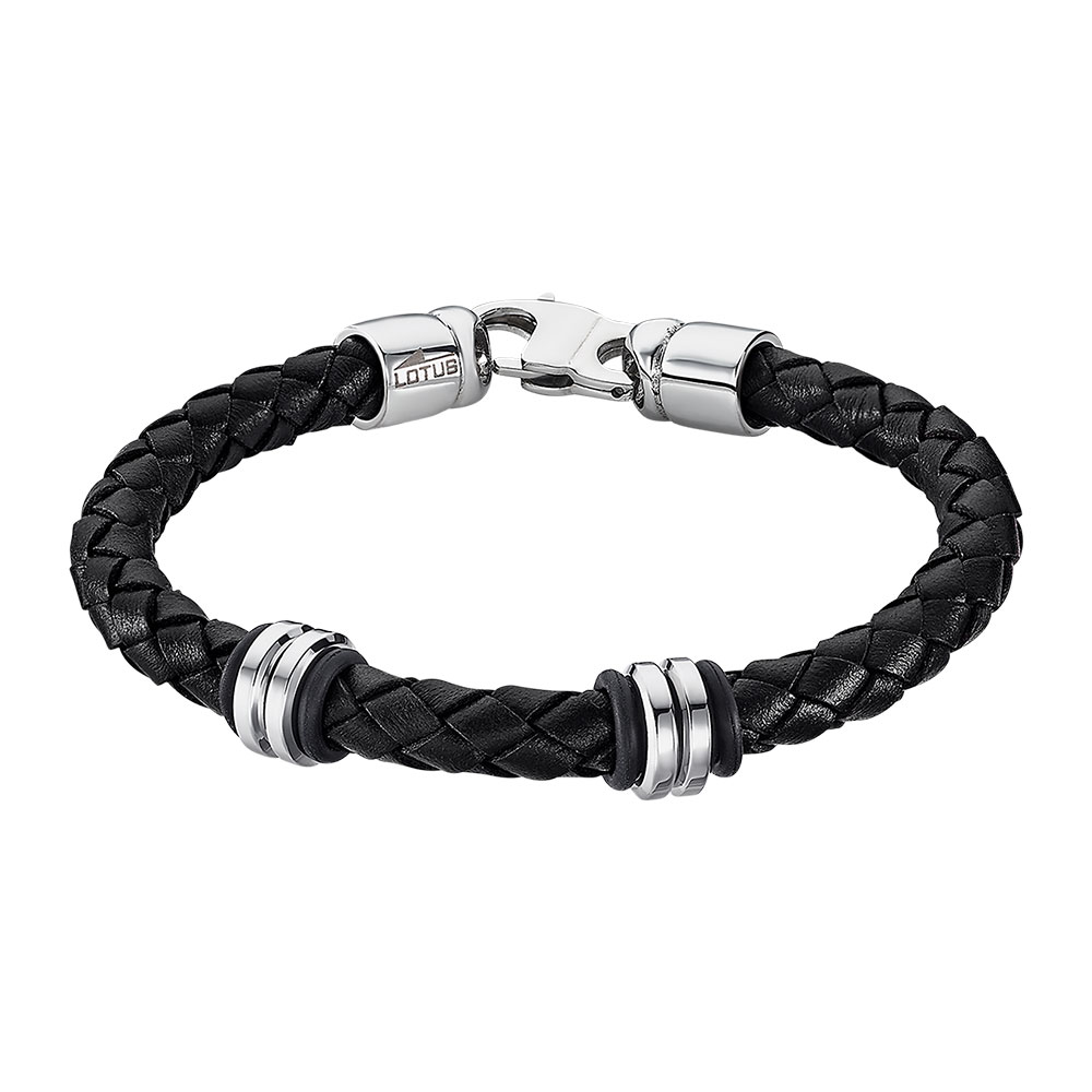 Lotus Style, armbånd i skinn og stål, sort (bredde 7 mm, lengde 22 cm)