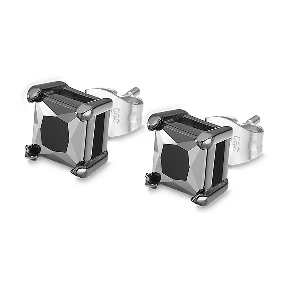 Lotus Style, ørepynt herre, stål, sort kvadratisk stein (6 mm)